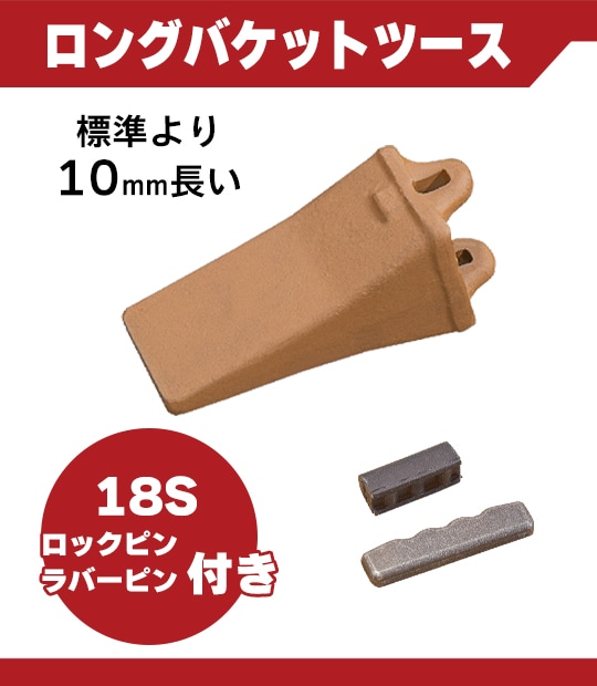 【ポイントツース】ロングバケットツース・18S・縦ピン(ロックピン・ラバーピン SET)