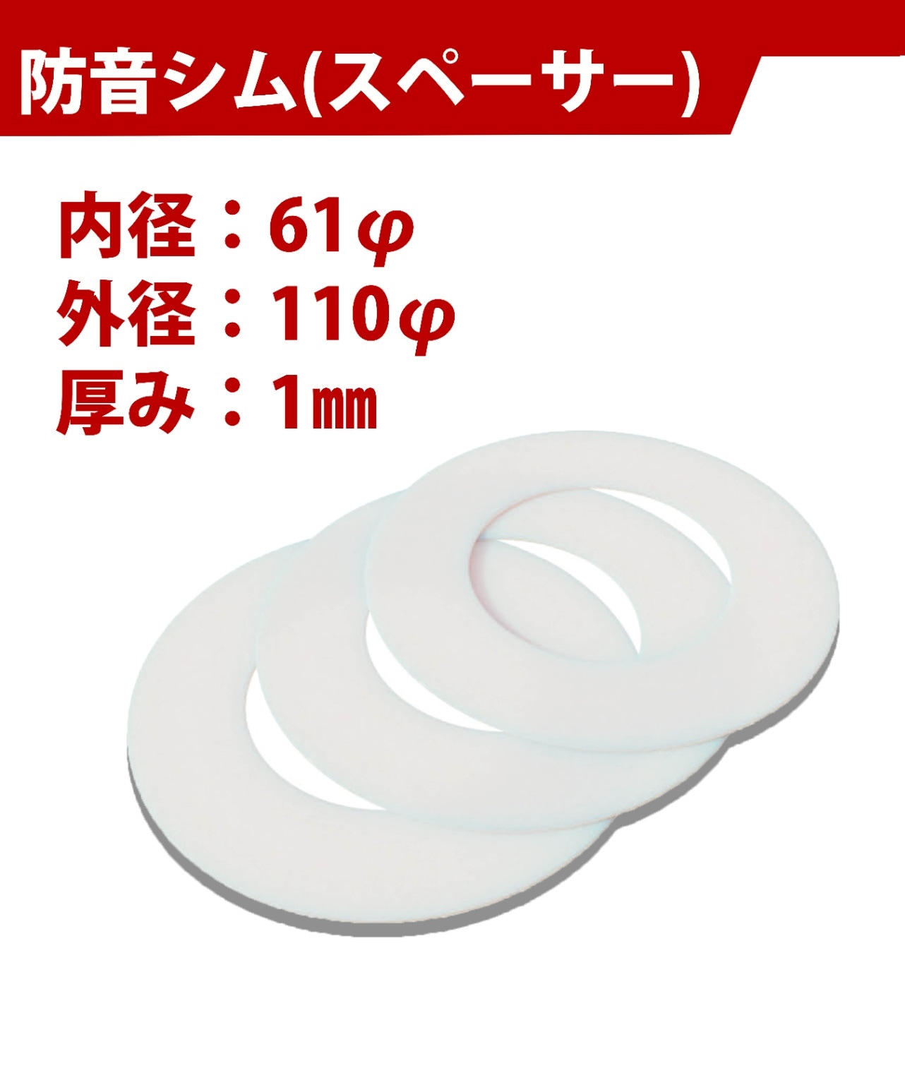 【防音シム・スペーサー】 内径 61φ * 外径 110φ * 厚み 1㎜ <10枚セット>