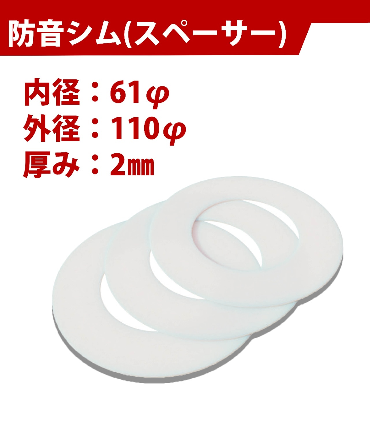 【防音シム・スペーサー】 内径 61φ * 外径 110φ * 厚み 2㎜ <10枚セット>
