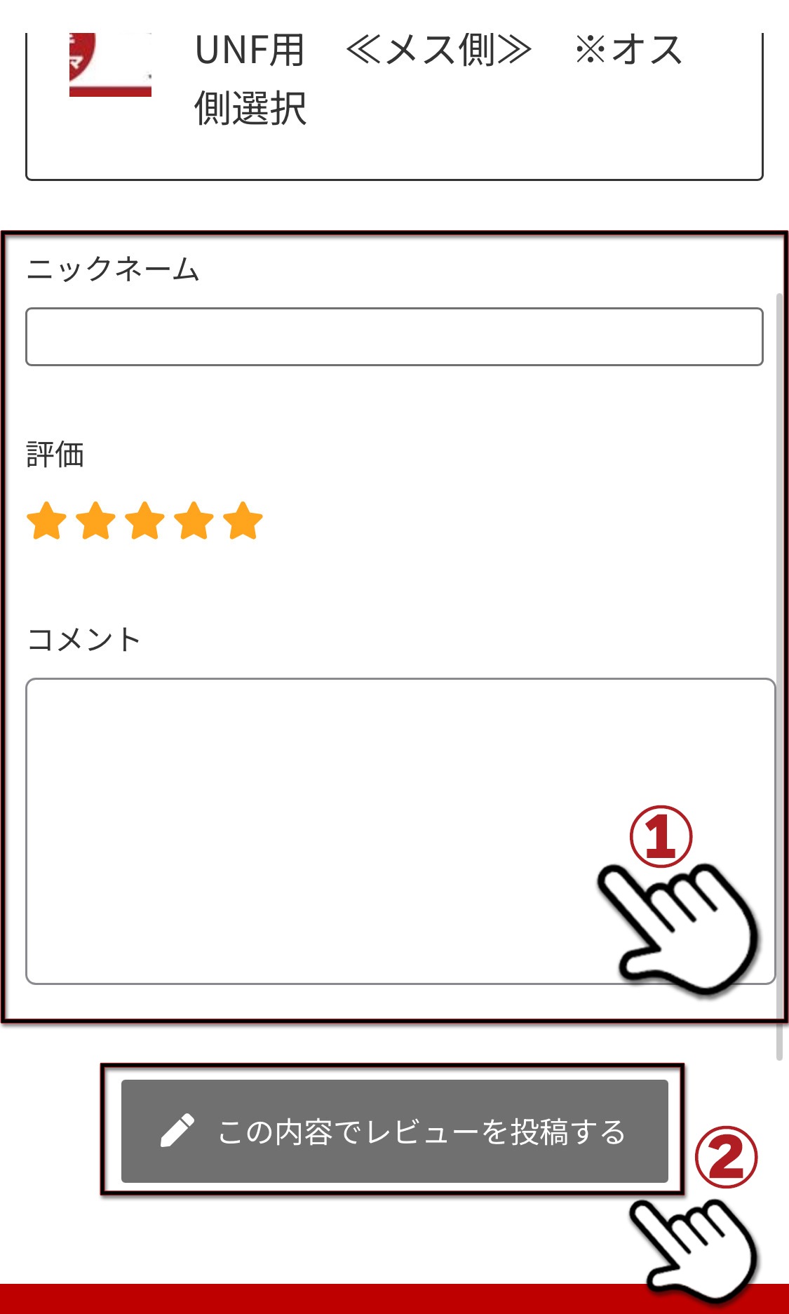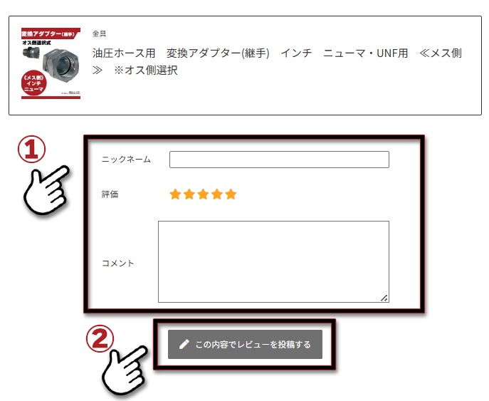 ③「ニックネーム」と「レビュー」欄に商品やサービスの評価をご記入ください。励みになります!
