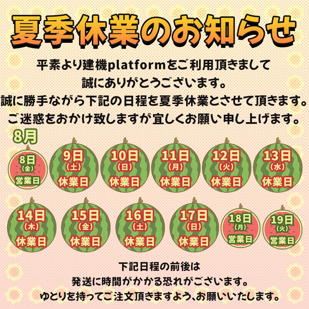 誠に勝手ながら2025/08/09(土)~2025/08/17(日)までを休業