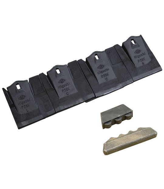 ツース盤(平刃)4枚組(ワイド幅)P25K 0.25クラス用 縦ピン コマツ PC78US|ロックピン付き