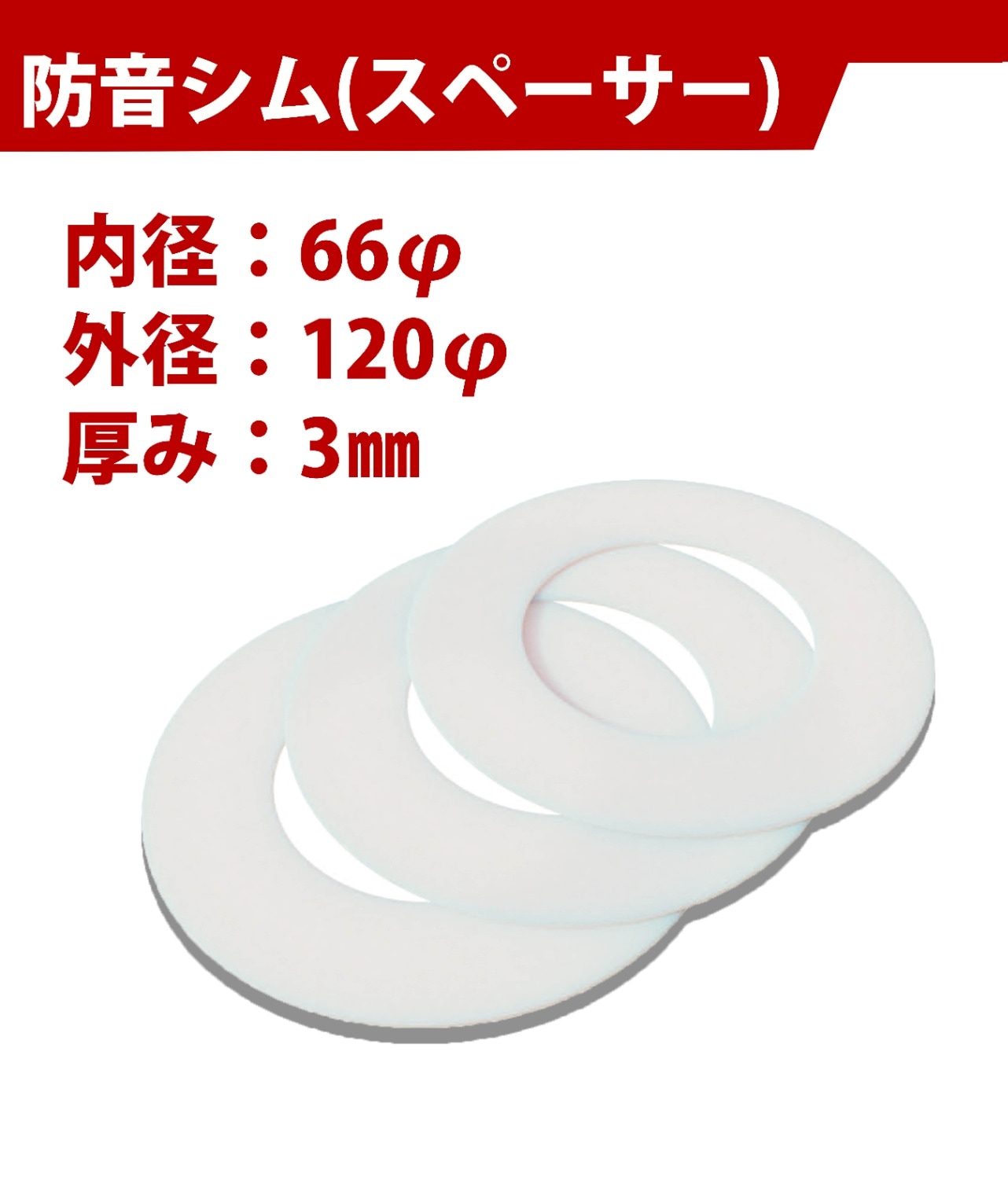 【防音シム・スペーサー】 内径 66φ * 外径 120φ * 厚み 3㎜ <10枚セット>